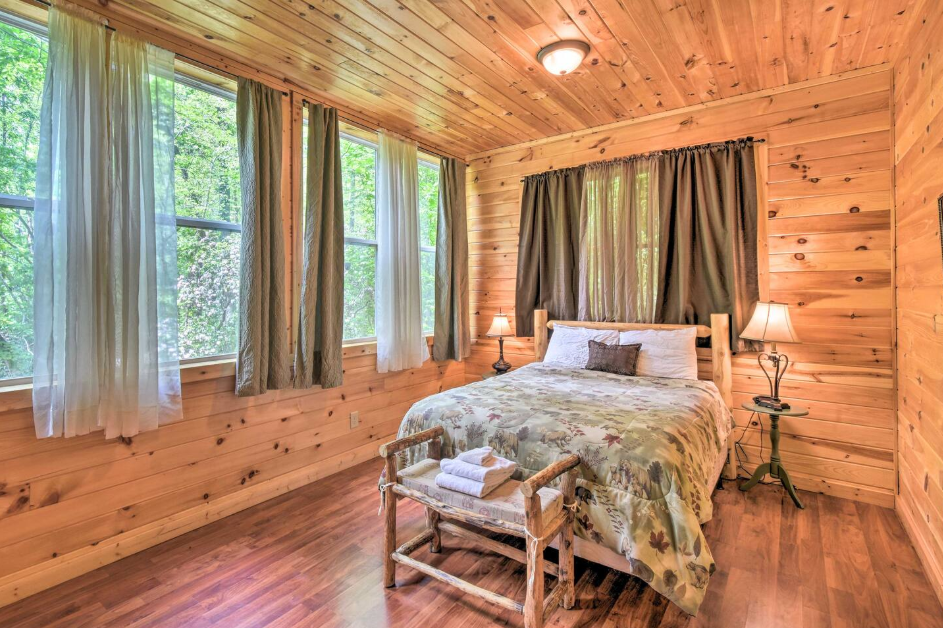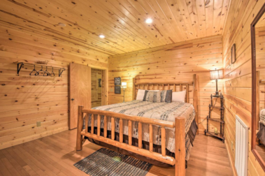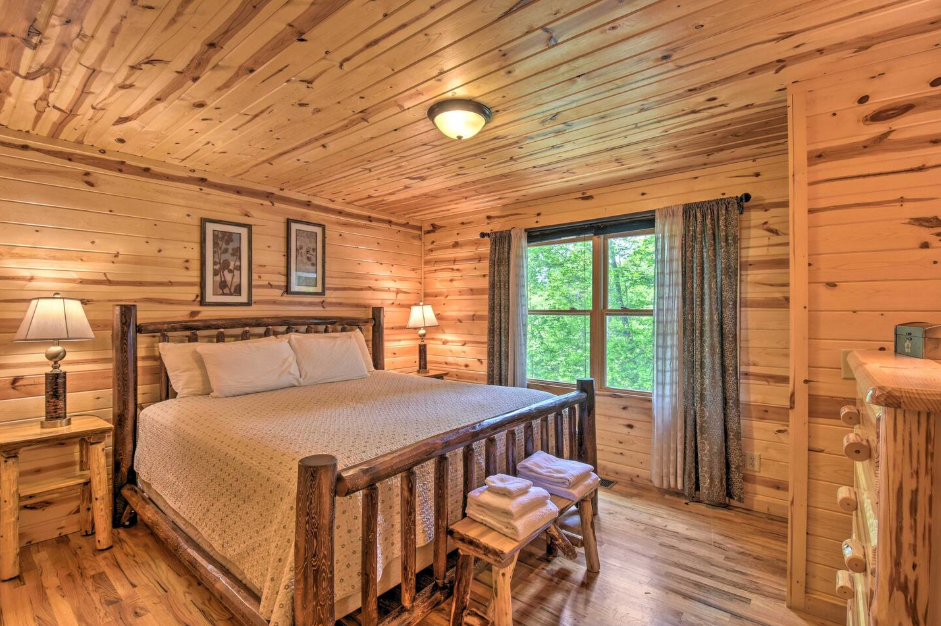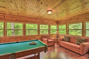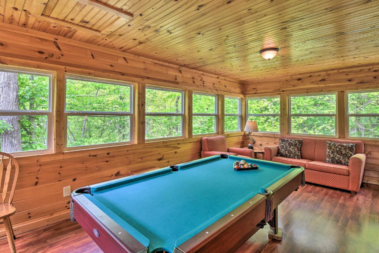 This two story, four-bedroom villa has an open living-dining-kitchen area complete with a stone fireplace and flat panel satellite television. Upstairs there is one bedroom with large a king-sized bed and a spacious full bathroom. Off the living area there is a meeting room with a pool table or gathering space with a wonderful woodland view that offers additional sleeping accommodations. Downstairs are three lovely bedrooms all with their own full bathrooms. One has a king size bed, the other two have queens.