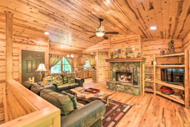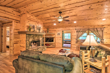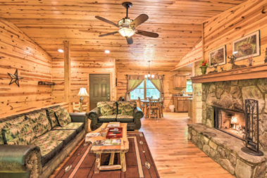 Large stone fireplace