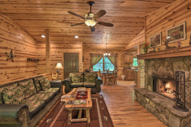 Large stone fireplace